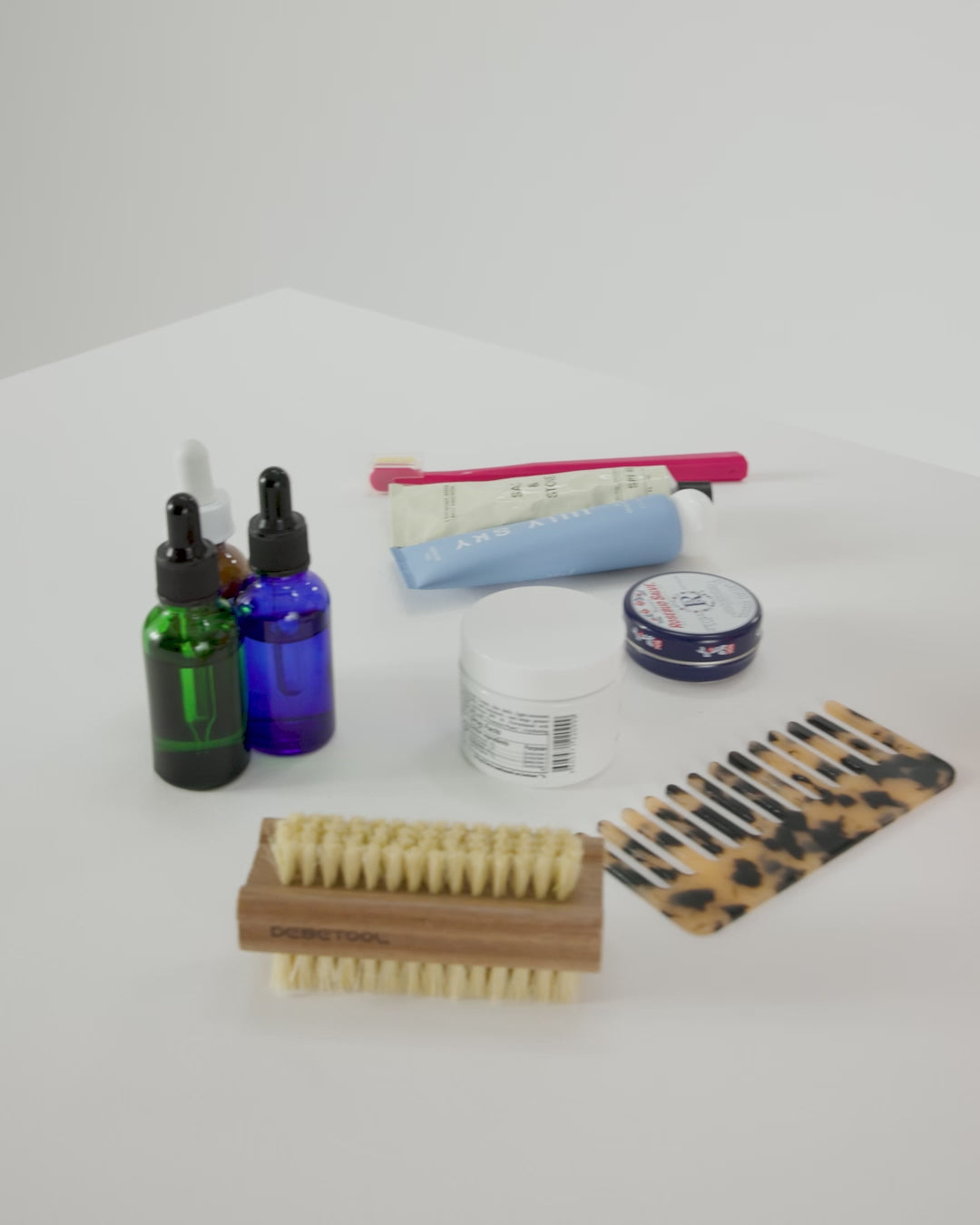 The Get Ready With Me Dopp Kit is the ultimate travel companion keeping you organised and zen. Embroidered motifs on a chocolate plum base.